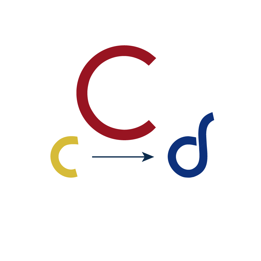 ∞の文字をバラして,cとdにしています。これは,連続(continuous)と離散(discrete)を意味していて,矢印の上のCは,Convertの意味です。研究室の代表的なテーマである量子化器の研究を表しています。